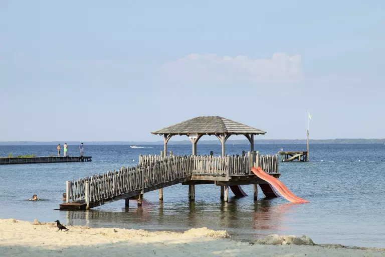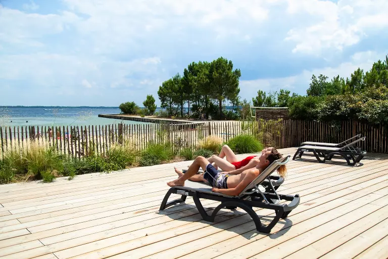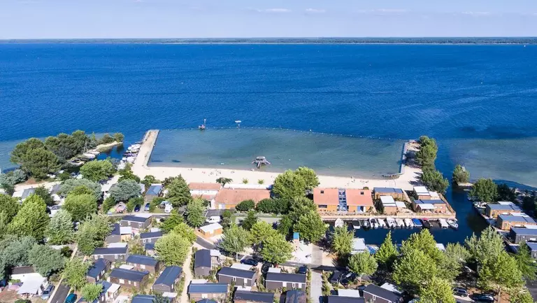 Quel bonheur de séjourner dans un camping les pieds dans l'eau ! Non seulement vous pourrez barboter en toute sécurité sur la plage privée du lac de Sanguinet du camping, mais vous aurez également accès à une large gamme d'activités nautiques.