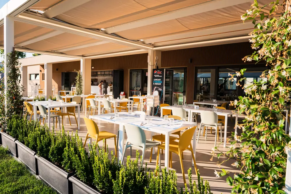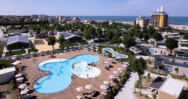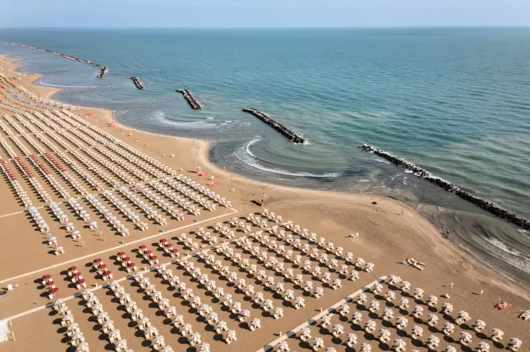 Savez-vous à quoi correspondent 35 000 mètres carrés ? Plus ou moins à 5 terrains de football réglementaires. Avec tout cet espace sur notre plage, vous ne risquez certainement pas de ne pas trouver votre place bien méritée au soleil, et vous pouvez également pratiquer de nombreux sports. Vous êtes sur le front de mer de Viserba, à seulement 2 km du centre de Rimini. En d'autres termes, vous pouvez vous reposer en toute tranquillité tout en profitant pleinement de la ville la plus à la mode de l'été. Le reste est assuré par un tout nouveau parc aquatique intérieur et une piscine pour votre compagnon à quatre pattes, ainsi que par un excellent restaurant, des espaces de remise en forme et l'hospitalité de notre personnel.