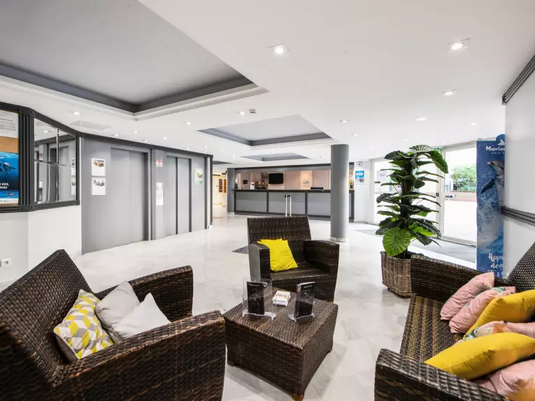 Vous profiterez du calme d'un petit parc dans une résidence aux appartements climatisés et confortables.