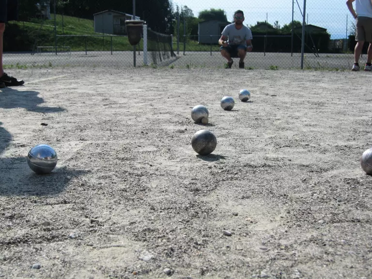 * Petanqueterrein, 2 tafeltennistafels, tennisbaan, multisportveld (basketbal, voetbal)