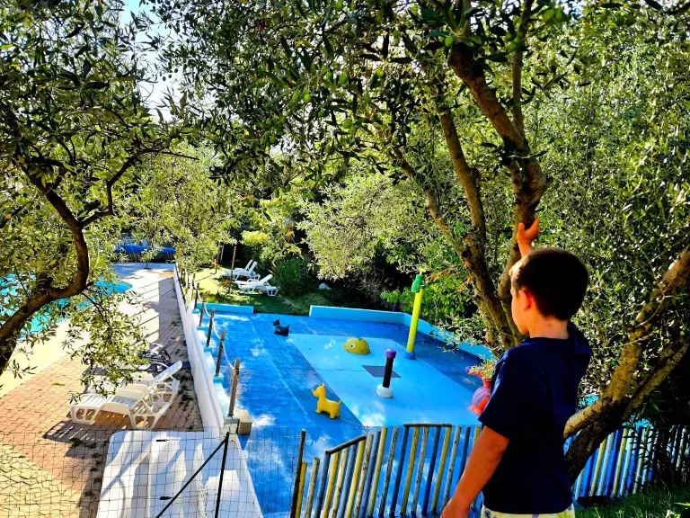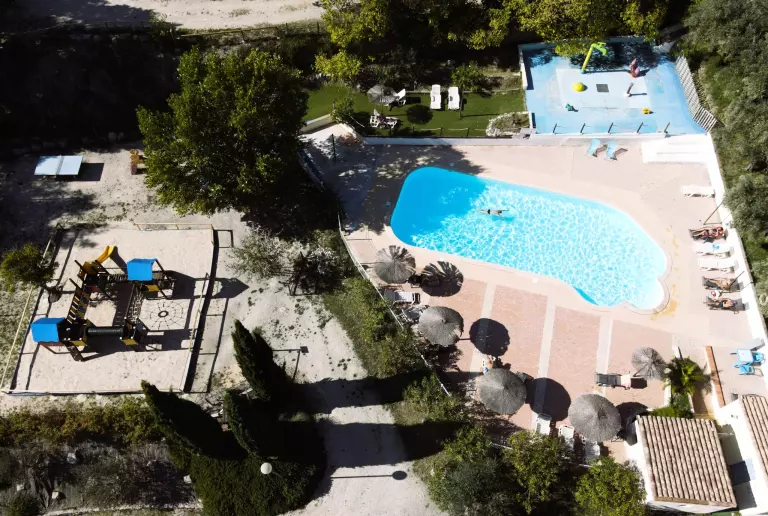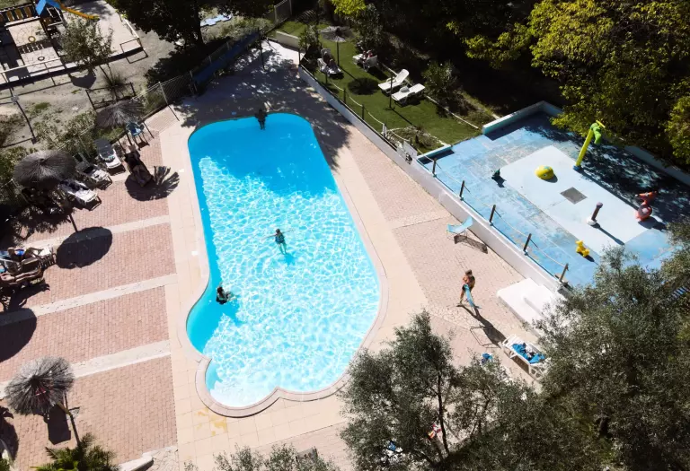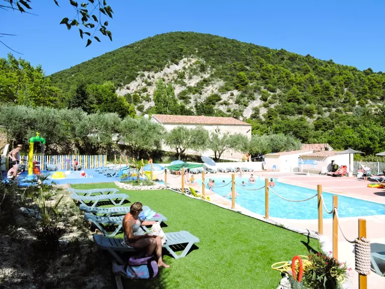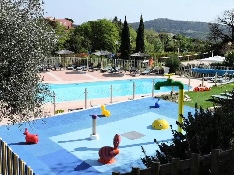 Het gezellige zwemgedeelte bestaat uit een verwarmd zwembad vanaf 13 mei (temperatuur afhankelijk van het weer) en een aqualudisch speelgedeelte voor kinderen. Rondom nodigen ligbedden en parasols uit tot ontspanning onder de Provençaalse zon.