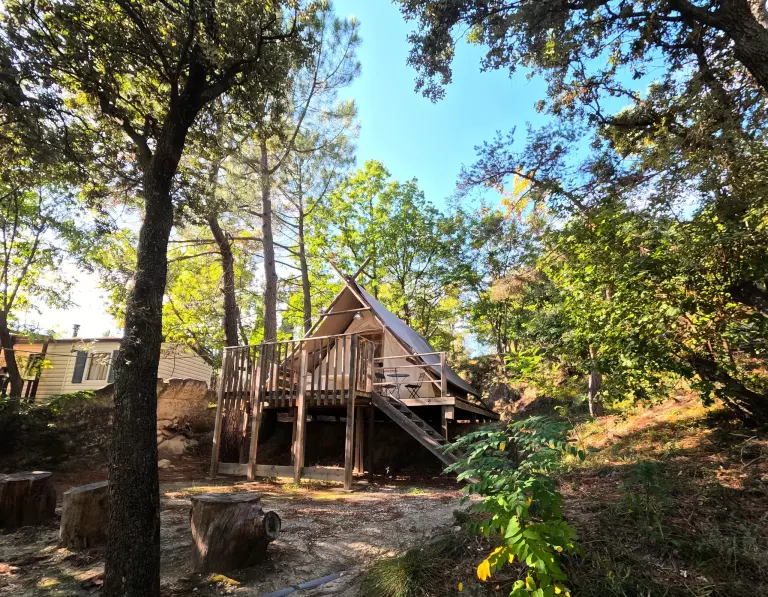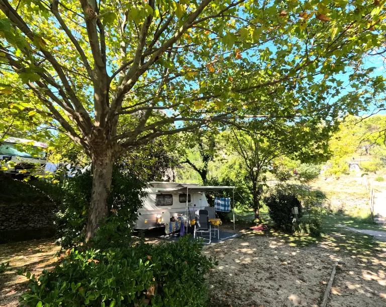 Gelegen op 3 hectare en beschut tegen de mistral, biedt de camping zowel huuraccommodaties als staanplaatsen, omgeven door groen en afgebakend met hagen, voor optimale rust, comfort en privacy.