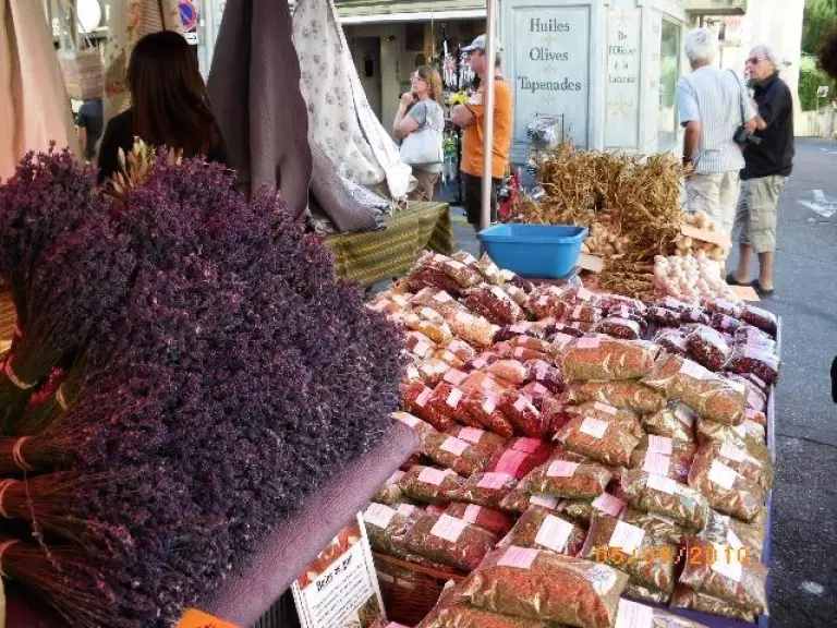 De hele week door kunt u slenteren over de Provençaalse markten en genieten van lokale specialiteiten: Nyons-olijven en olijfolie AOP, geitenkaas (picodons), nougat, abrikozen, lavendelhoning, Rhônevalleiwijnen en ambachtelijke producten.