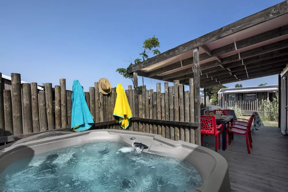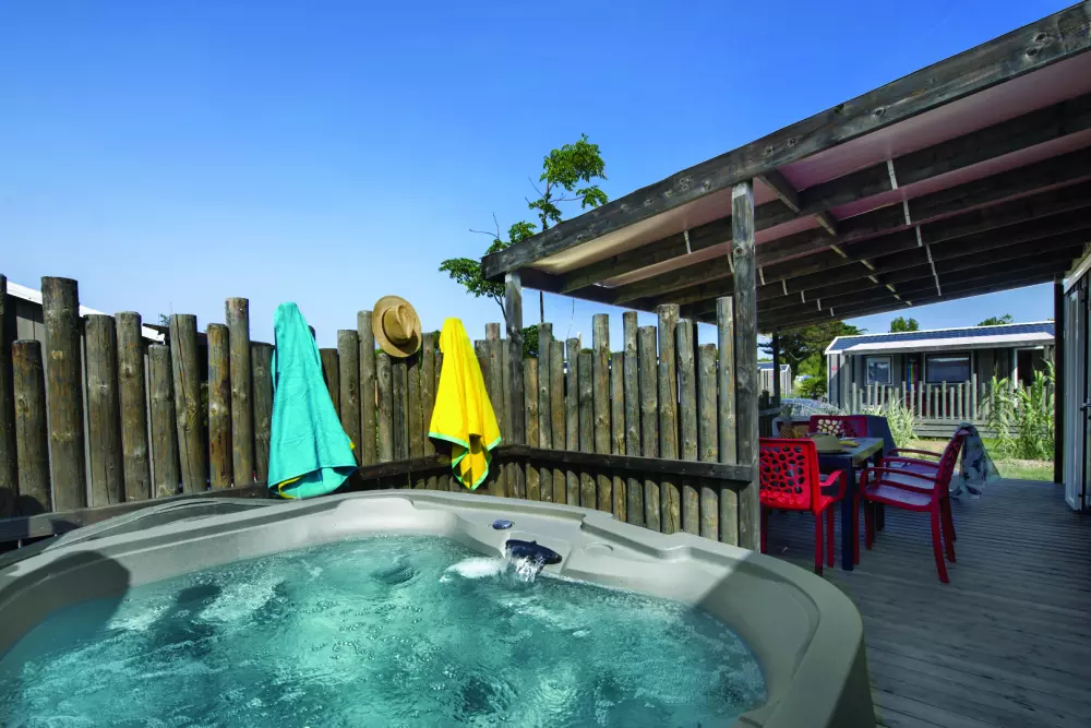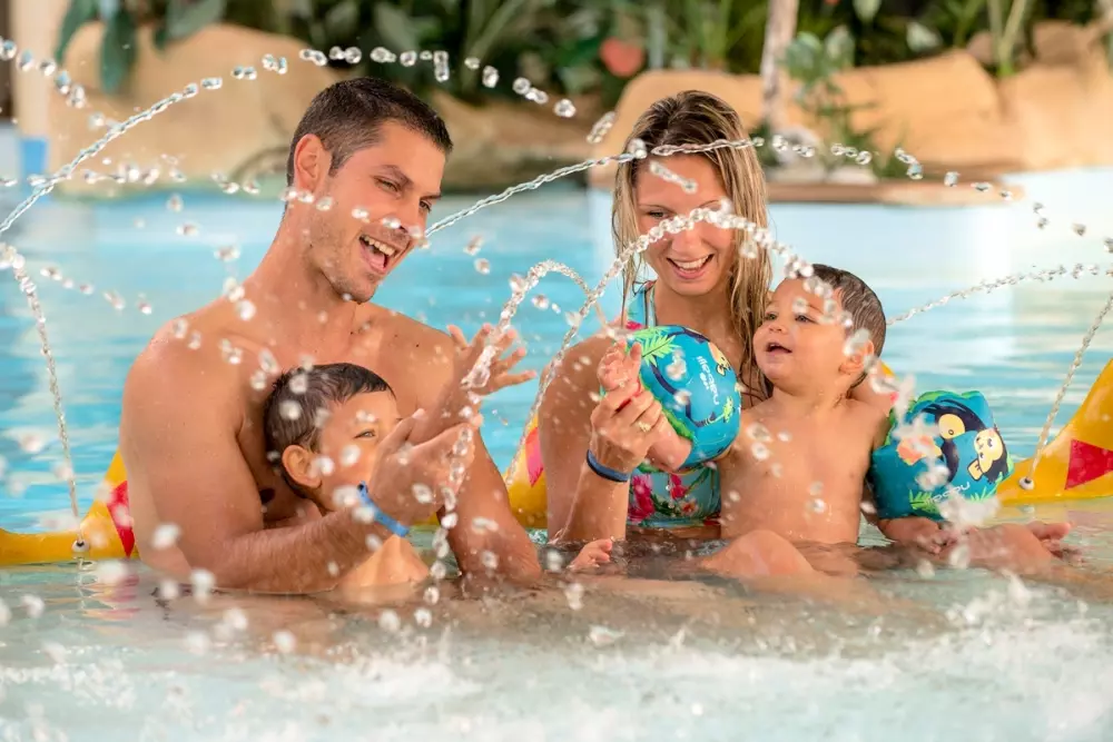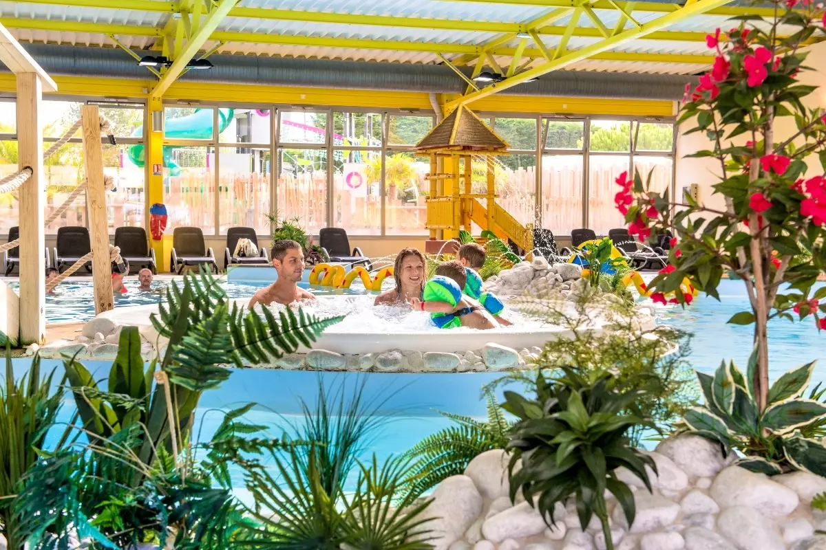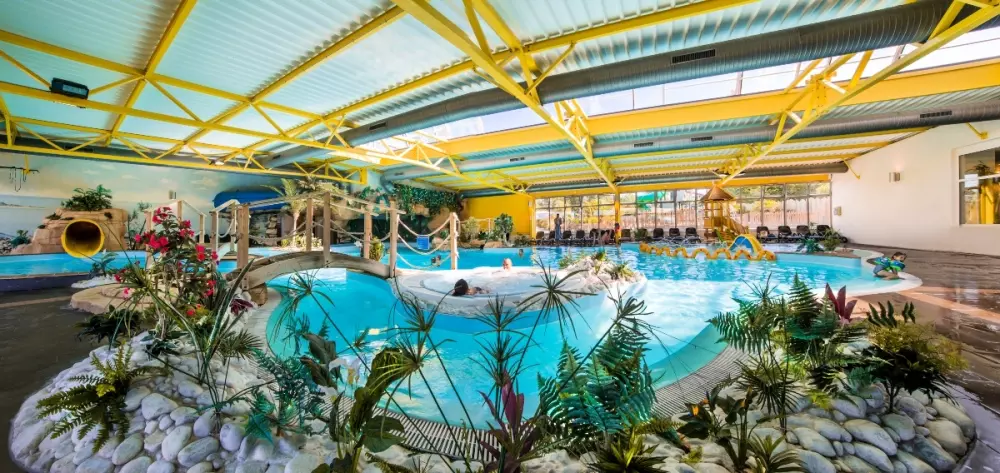 Op deze geliefde familiecamping kun je het hele seizoen door genieten van het overdekte waterpark, verwarmd tot 29°, met zwembad, whirlpool, tegenstroomrivier, glijbaan, peuterbad, sauna en hamam - allemaal gratis toegankelijk! En van half juni tot half september profiteer je ook een buitenwaterpark met spa-plezier en jacuzzi's voor nog meer waterpret.