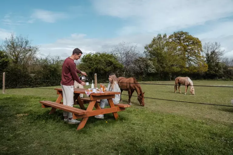 Mont-Saint-Michel verblijf je midden in een groene weide waar nieuwsgierige pony's vrij rondlopen. Vanuit je knusse tiny house kijk je zo uit over het veld, waar de pony's grazen en spelen. Een plek waar je vertraagt, buiten bent en even helemaal weg bent van de drukte.
