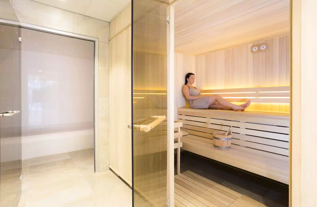 - Aquarelaxant gebied (jacuzzi's, hammam, sauna, zwembad tegen stroom)