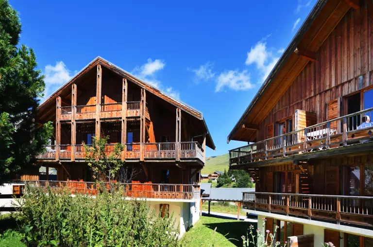 De residentie bestaat uit 97 appartementen verdeeld over 17 chalets met lokale architectuur en typische Savoyard charme met houten gevels.